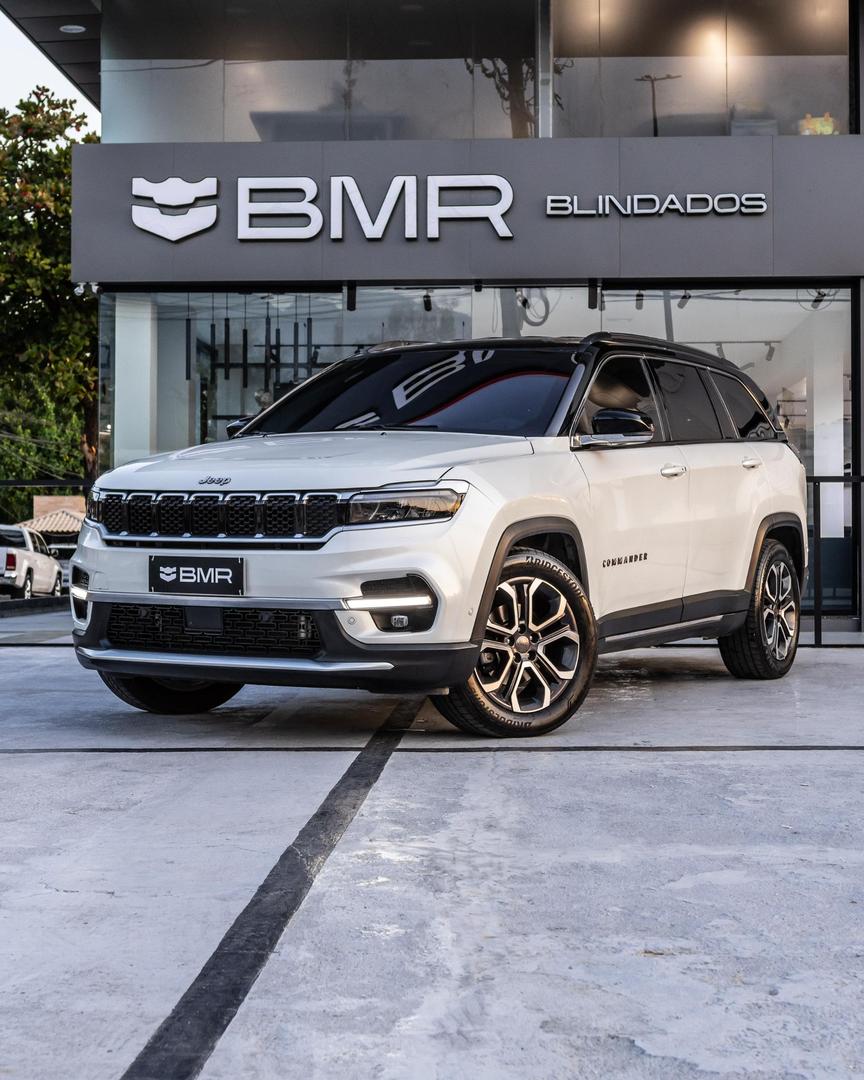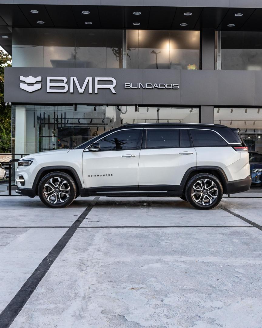 - elegancia, espaco e versatilidade para toda a familia informacoes gerais modelo: jeep commander limited t270 1.3 turbo flex ano: 2025 transmissao: automatica de 6 marchas cor externa: branca tipo de blindagem: nivel iii-a ipva 2025: quitado design e estilo interior: acabamento premium em couro, central multimidia de 10,1 polegadas, painel digital de 10,25 polegadas, ar-condicionado digital dual zone, volante multifuncional com ajuste de altura e profundidade farois: full led com drl e acendimento automatico motorizacao e performance motor: 1.3 turbo flex t270 potencia: 185 cv etanol 180 cv gasolina torque: 27,5 kgfm tracao: dianteira fwd cambio: automatico de 6 marchas 0 a 100 kmh: ~9,5 s velocidade maxima: ~202 kmh equipamentos e acessorios central multimidia com android auto e apple carplay sem fio; camera de re e sensores de estacionamento dianteiros e traseiros; piloto automatico adaptativo; bancos em couro com ajustes eletricos; chave presencial; partida por botao; carregador por inducao; rodas de liga leve aro 18 polegadas; assistente de partida em rampa; alerta de colisao; frenagem automatica de emergencia. disponivel para visitacao local: av. das americas, 1699 – rio de janeiro bmr blindados | seguranca que impressiona