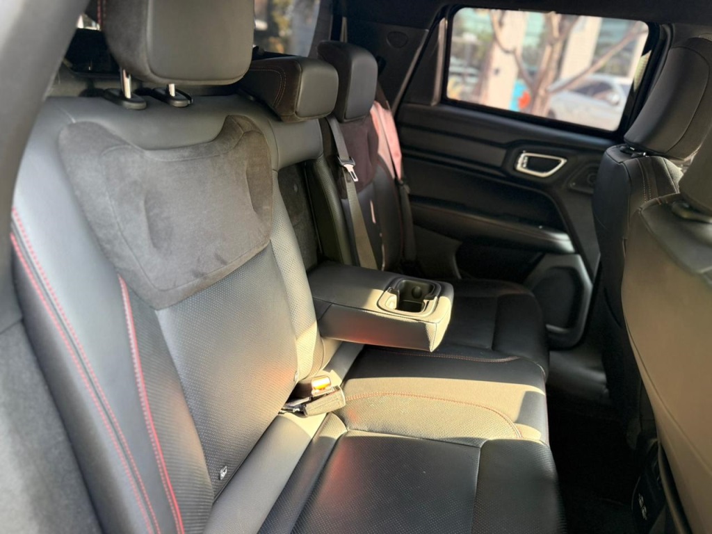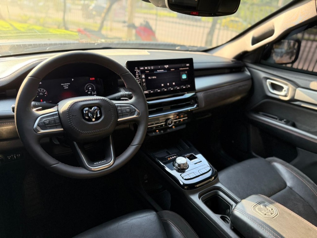Bancos em couro preto, com detalhes em alcântara e ajustes elétricos.